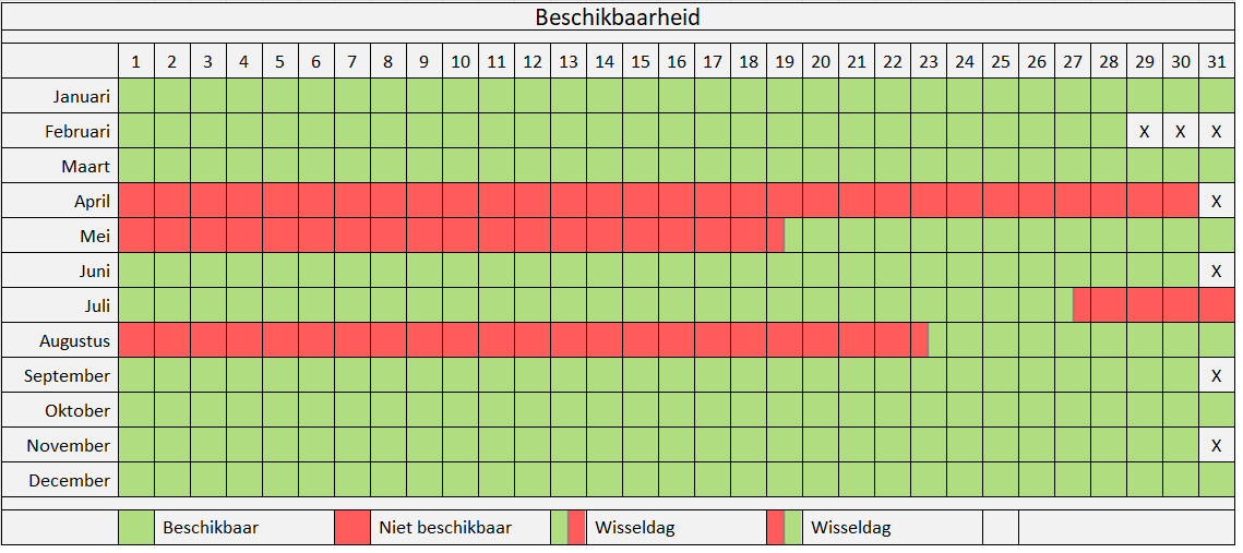 *) Vraag naar onze speciale 'overwinter' tarieven voor periodes langer dan twee weken.